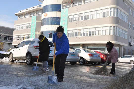26日一大早,三圣高管團(tuán)隊(duì)在馮圣君董事長(zhǎng)的帶領(lǐng)之下,操起鐵鍬,揮舞掃帚,分區(qū)分片,親自清除廠區(qū)主干道上的結(jié)冰積雪。為了安全與暢通,現(xiàn)場(chǎng)熱火朝天。