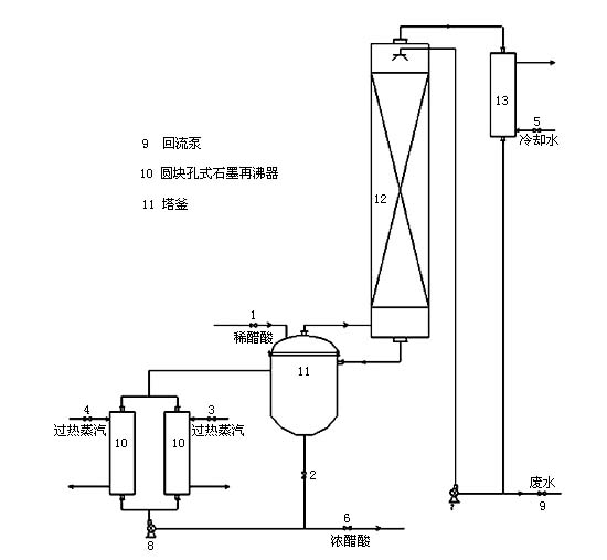 本系統(tǒng)采用先進(jìn)設(shè)計(jì)理念,將生產(chǎn)過程產(chǎn)生的15%-25%的稀醋酸濃縮到99%,在此過程中使排放的廢水達(dá)到環(huán)保標(biāo)準(zhǔn)。系統(tǒng)主體設(shè)備-石墨精餾塔,采用聚四氟乙烯浸漬石墨新型材料制造,整個系統(tǒng)具有工藝先進(jìn),操作簡便,運(yùn)行費(fèi)用少,使用年限長的特點(diǎn),目前,該系統(tǒng)已在浙江龍盛集團(tuán)、浙江閏土集團(tuán)成功運(yùn)行。